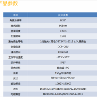10米激光安全防護(hù);激光防護(hù)等級(jí)1級(jí);大視場(chǎng)、精確測(cè)量;工作溫度-25~50℃;防護(hù)等級(jí)IP67。電話(huà)/微信15152255397