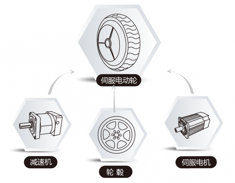 北京和利時電機公司自主研發的低壓伺服電動輪屬直驅低壓伺服輪轂電機,具備伺服電機高精度、高響應速度等優良特性,三位一體的極簡化設計,直接替代原有電機+減速器+輪子的結構,大大提升了機器人底盤空間利用率,降低了機器人本體質量過大的缺陷。