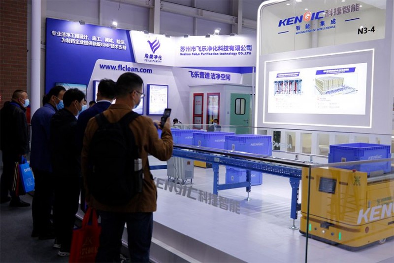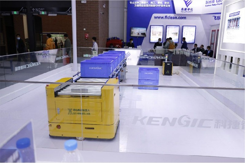 螞蟻機器人在此次展會現場進行無人化自主搬運的動態演示:在調度系統的指揮下,螞蟻自主研發的激光SLAM輥筒式料箱AGV自動搬運料箱與生產線對接,自動配送過程中能夠高效精準對接搬運線體,同時演示現場設置障礙物,AGV能夠自動識別障礙,避障繞行,完成貨物的實時運輸。螞蟻機器人的高效對接和精準避障滿足了醫藥行業在藥品種類多和環境復雜的背景下對安全頻繁轉運的配送需求。