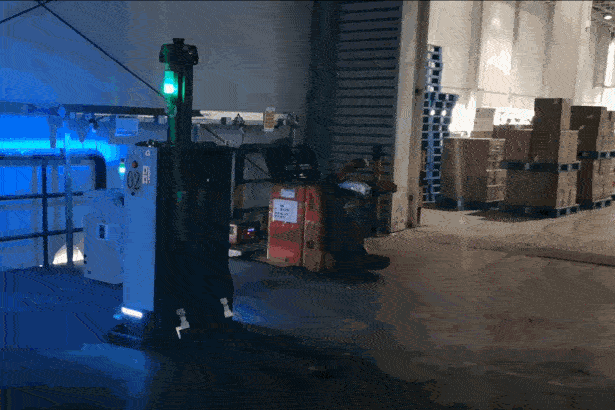 在項目改造倉區域,京東引入螞蟻AMR柔性搬運解決方案,替代人工從立體庫站臺取貨運送,搬進巷道地堆擺放,提升了搬運效率,自主充電、24小時不間斷作業,大幅度降低搬運成本。地堆托盤間距小,無需叉車通道,倉儲空間最大化利用,降低倉儲運營成本。