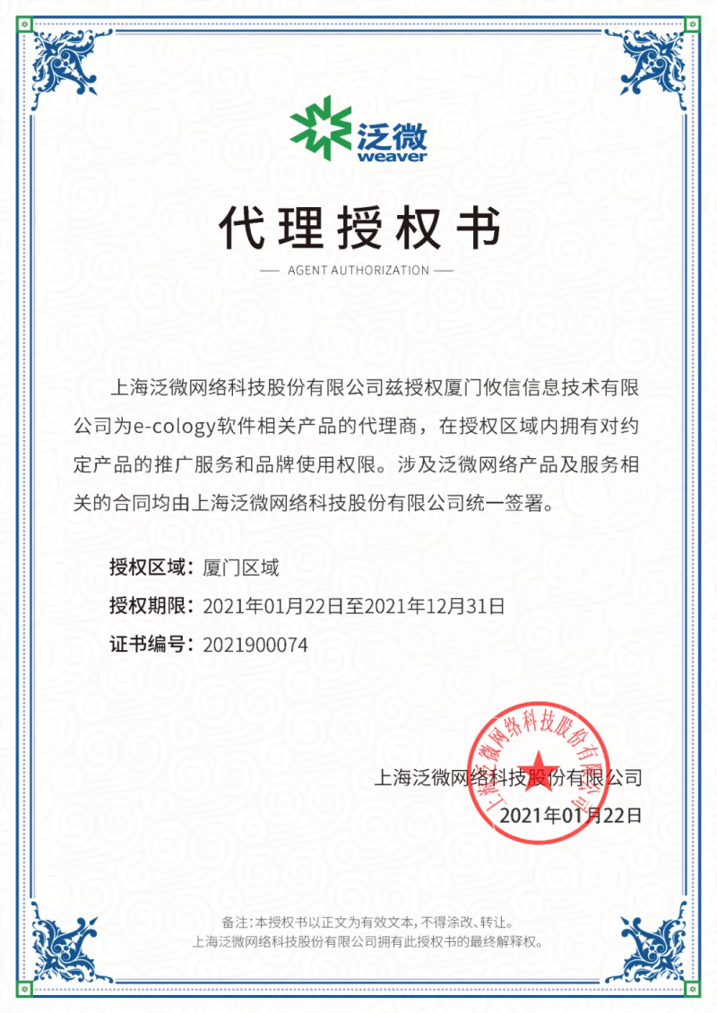 發證機構:   上海泛微科技股份有限公司 發證時間 :   2021-01-22