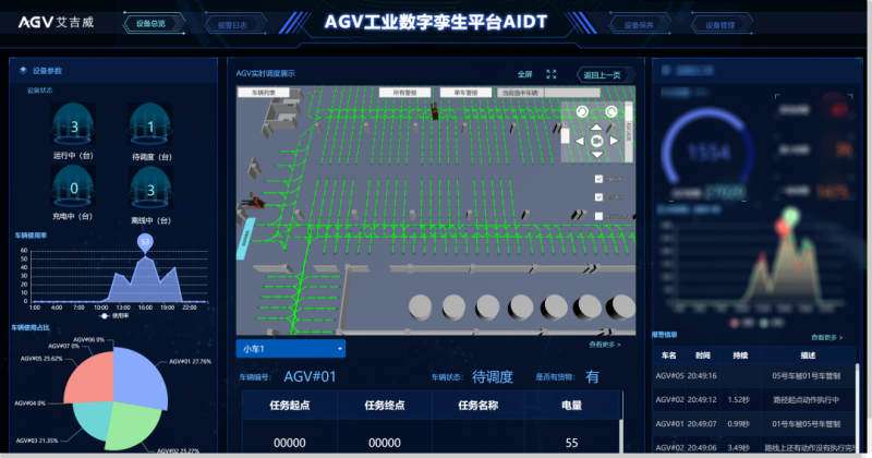 然而,小A的故事還沒有結(jié)束。基于艾吉威免費(fèi)贈(zèng)送的數(shù)字化工廠AIDT(艾吉威工業(yè)數(shù)字孿生)平臺(tái),小A可以做一些維護(hù)保養(yǎng)的事項(xiàng)。該平臺(tái)可采集每輛小千斤的所有信息,包括故障、速度、電量、任務(wù)等,可實(shí)現(xiàn)對所有機(jī)器人產(chǎn)品的實(shí)時(shí)監(jiān)控與故障排查,真正實(shí)現(xiàn)小千斤產(chǎn)品的遠(yuǎn)程運(yùn)維。