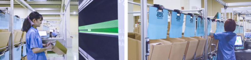 海康機器人系統與PPS和SAS無縫對接,PPS通過投影的方式照亮需上架和下架的貨的倉位,具備放錯報警機制,SAS增加開門動作,有效防呆,防止人工投錯,提升揀選正確率至近100%。