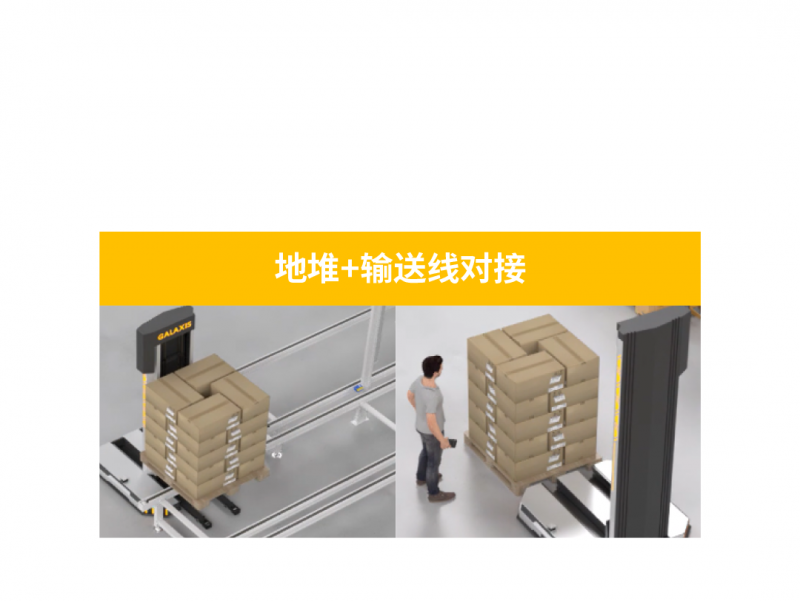 叉臂叉取的模式,可直接對接地面托盤,舉升對接各類接駁口及橫梁貨架