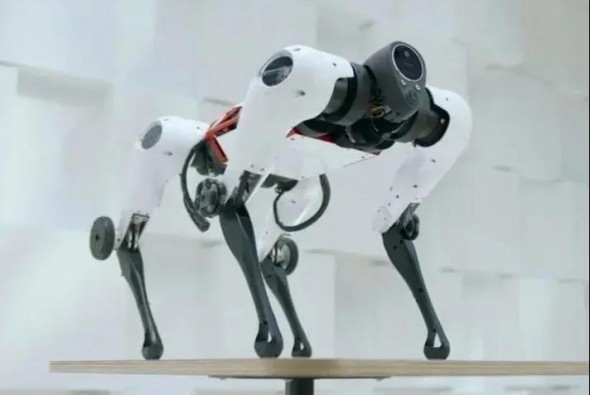 該款機(jī)器人采用了騰訊Robotics X實(shí)驗(yàn)室原創(chuàng)自研的足輪融合方案,有腿又有輪。