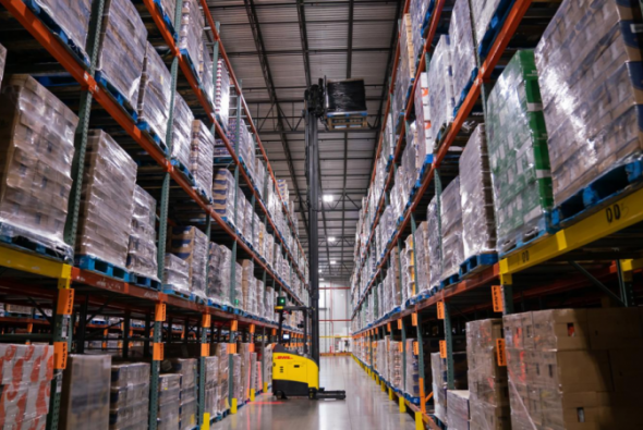 第一臺無人叉車采用配備 JBT 自動化系統(tǒng)機器人技術的 Crown R 1000 系列雙深位前移式叉車。