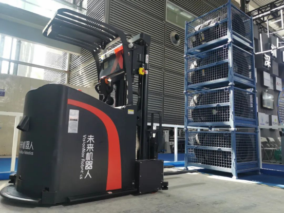在該階段,大部分叉車AGV企業的重點發展方向是通過自動化取代人工叉車場景,所以更加注重技術上的賦能,在車體基礎結構上沒有太多改造。其中,在突破技術場景的企業當中,以未來機器人為代表,對6層以上料框堆疊、9.4米高位存取以及2.0米窄通道存取等深水區場景實現攻克,進一步拓寬無人叉車的使用場景與應用方式。