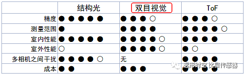 綜合到移動(dòng)機(jī)器人在非結(jié)構(gòu)化場景中的應(yīng)用,對(duì)照上表的性能對(duì)比可以看到主動(dòng)雙目深度相機(jī)無疑是最好的選擇。首先雙目原理兼顧了室內(nèi)室外場景,避免了多機(jī)的干擾,對(duì)于環(huán)境具有最高的適應(yīng)性;同時(shí)在測(cè)量范圍和測(cè)量精度上也具有非常好的性能兼顧;最后雙目系統(tǒng)可以非常好地平衡成本,做到價(jià)格可控。