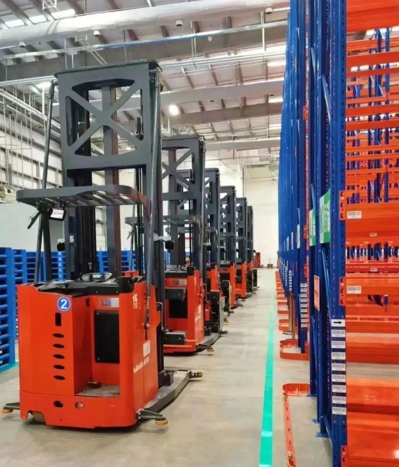 2、MiMA站駕式三向堆垛叉車配置巷道機械式導軌模式,使其無需轉動方向盤,實現直進直出功能,達到安全高效行駛;