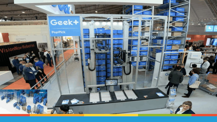德國LogiMAT2023國際物流展覽會圓滿落幕。極智嘉攜多款明星方案集結亮相:RoboShuttle全柔性貨箱方案(RS+P40)、新一代貨架到人揀選方案PopPick、智能升降分揀機器人S20C-A與智能搬運機器人M200C,為歐洲提供了適配多場景的內部物流解決方案。