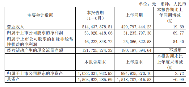 蘭劍智能8月24日晚間發(fā)布半年度業(yè)績(jī)報(bào)告稱,2023年上半年?duì)I業(yè)收入約5.14億元,同比增加19.69%;歸屬于上市公司股東的凈利潤(rùn)約5303萬元,同比增加69.77%;基本每股收益0.73元,同比增加69.77%。