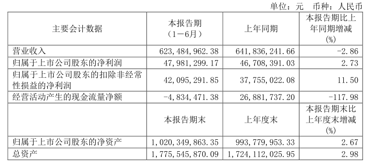 德馬科技8月20日晚間發(fā)布半年度業(yè)績(jī)報(bào)告稱,2023年上半年?duì)I業(yè)收入約6.23億元,同比減少2.86%;歸屬于上市公司股東的凈利潤(rùn)約4798萬元,同比增加2.73%;基本每股收益0.4元,同比增加2.56%。