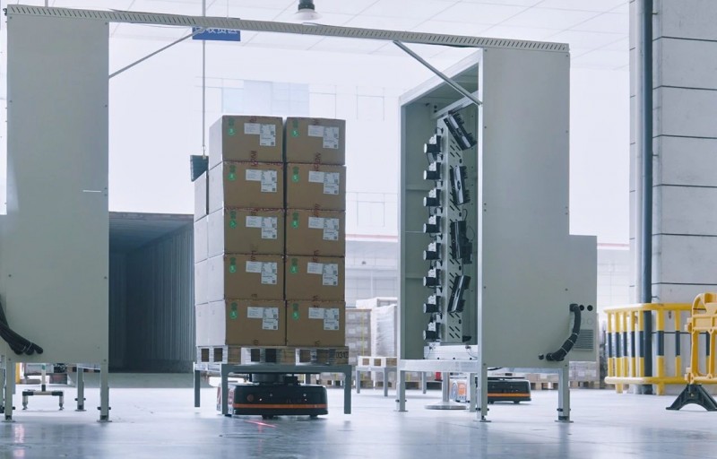 智能工廠集成了PTL分撥墻、多款AMR機器人、提升機等多種硬件設備。海康機器人控制系統RCS-2000對近200臺AMR實現集群調度控制、運輸管制、路徑優化等,確保系統運行高效順暢,各設備作業協同有序。