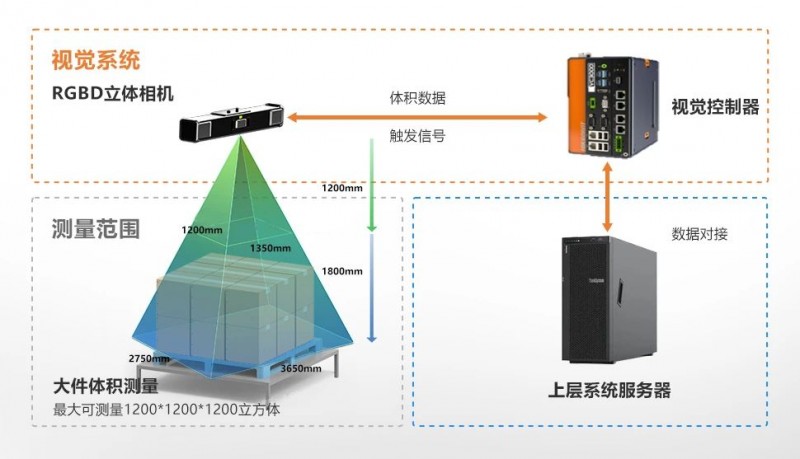 測(cè)量精度:±10mm,針對(duì)倉(cāng)儲(chǔ)物流,碼垛類型的超大件物體進(jìn)行體積測(cè)量。