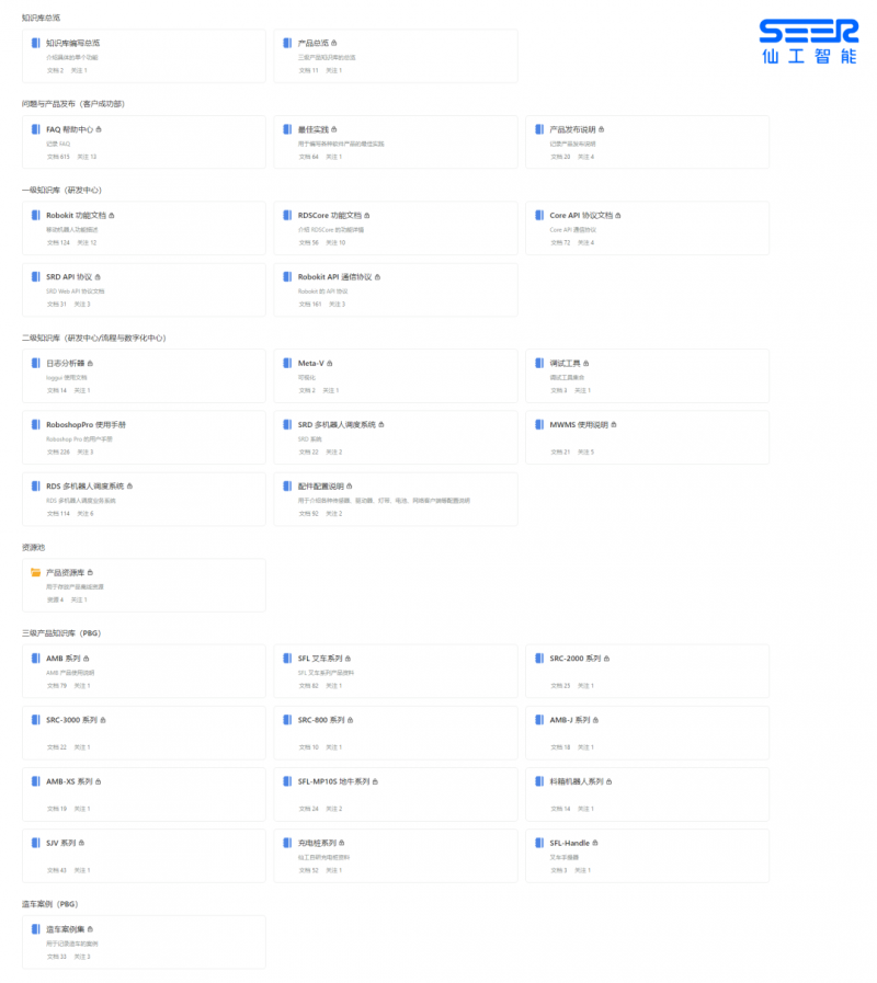 基于仙工智能知識庫,客戶可以查閱詳細的 AMB 底盤文檔信息,包含使用手冊、技術文檔等,并提供完整的上裝集成手冊,全面詳盡的資料支持不僅解決了客戶制造過程的所有難題,也進一步確保了機器人制造的高質和高效。