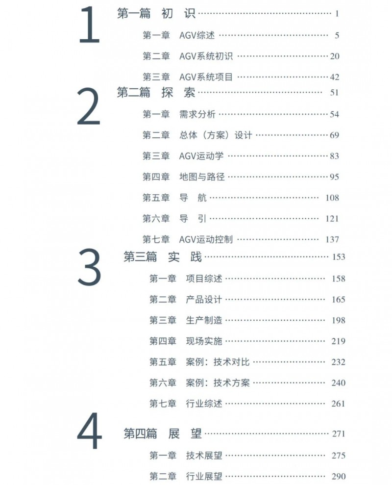 第三篇-實踐,描述一些AGV設計原則、技術規范、項目實施、行業應用案例等。