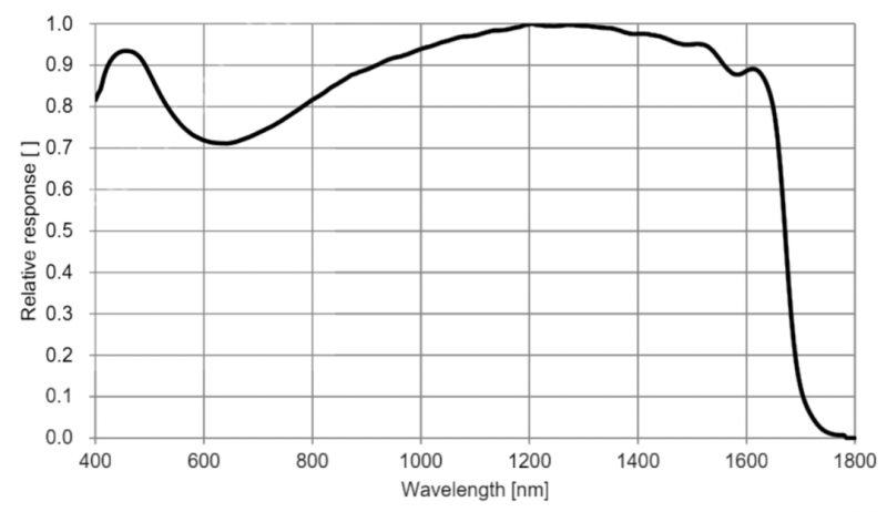 MV-CI013-GS-NN支持0.4 ~ 1.7μm 寬光譜成像,將可見光和短波波段的響應融于一臺相機,打破了原先僅僅響應于可見光或者SWIR波段的傳感器局限,有助于削減系統成本,通過減輕圖像處理負荷提升處理速度,大幅度擴展檢測對象的領域和范圍。