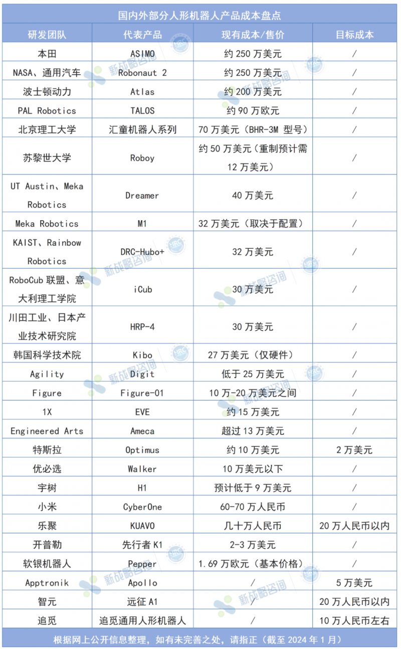 而放眼國內,小米、宇樹、樂聚等公司也透露,其人形機器人產品的單臺造價也高達幾十萬到上百萬人民幣…