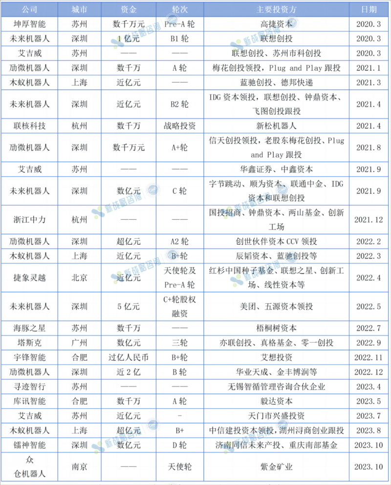 圖表:2020-2023年無人叉車企業(yè)融資事件(根據(jù)公開信息整理,如有未完善之處,請(qǐng)指正)