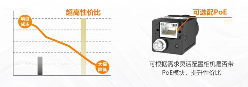 通過精簡相機資源、選配POE模塊,保留“恰到好處”的功能,在滿足廣泛視覺檢測與分析應(yīng)用需求的同時,還提供了超高性價比。