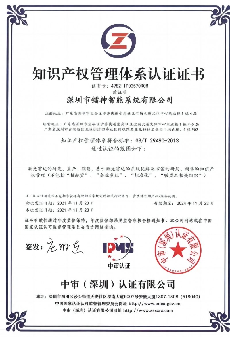 鐳神智能對(duì)技術(shù)專(zhuān)利的申請(qǐng)與保護(hù)持有極高的重視度。公司不僅成功取得了知識(shí)產(chǎn)權(quán)管理體系認(rèn)證,更憑借其卓越的表現(xiàn),榮獲廣東省知識(shí)產(chǎn)權(quán)示范企業(yè)的稱(chēng)號(hào),同時(shí)被評(píng)為深圳市知識(shí)產(chǎn)權(quán)優(yōu)勢(shì)單位。這些榮譽(yù)充分體現(xiàn)了鐳神智能在知識(shí)產(chǎn)權(quán)保護(hù)方面的領(lǐng)先地位和不懈努力。