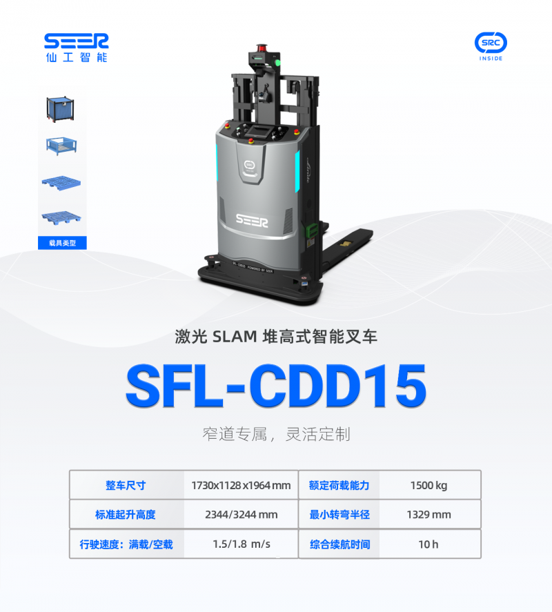 SFL-CDD15 基于林德車體打造,內置仙工智能 SRC 控制器,產品競爭力 Next Level。
