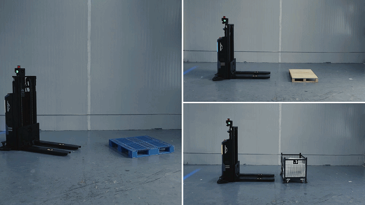 仙工智能在智能叉車系統中融合了 AI 算法,無需人工手動輸入載具相關信息,叉車通過 3D 深度相機自動輸入相關信息,再通過 AI 學習分析決策,識別載具空間位姿,智能規劃叉取路徑。(關于 AI 自適應識別和叉取內容可以點擊