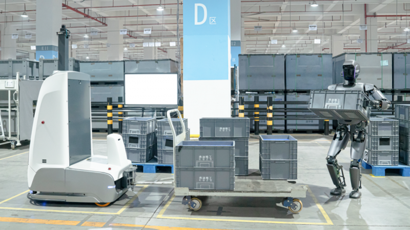 UQI優奇發布了行業首個人形機器人與L4級無人物流車、工業移動機器人和智能制造管理系統協同作業的工業場景解決方案。