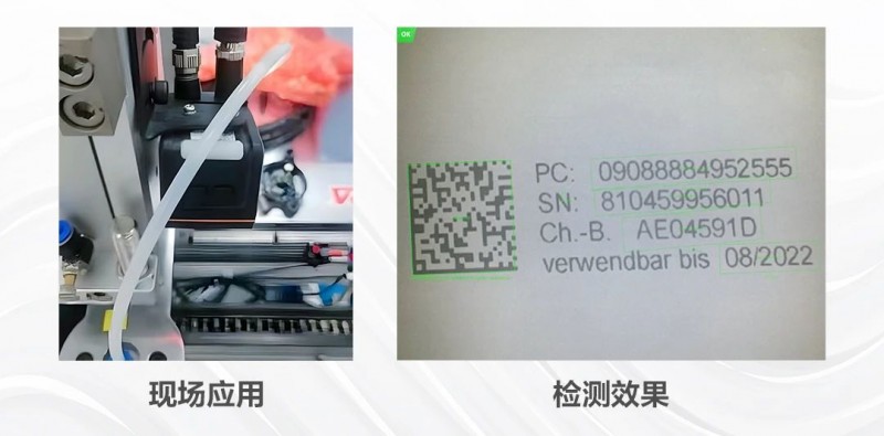醫藥產品出廠前要求對產品質量嚴格把關,藥盒外包裝需要檢測“三期”字符和讀碼,并將檢測信息上傳至MES系統比對,防止異常產品流入市場。