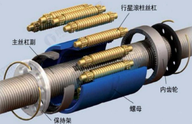 行星滾柱絲杠是一種高精度線性傳動部件,能夠將電機的旋轉運動高效轉化為直線運動。其核心工作原理基于“行星傳動 + 螺紋嚙合”的復合結構,通過多枚滾柱在絲杠與螺母之間協同運動,實現力的穩定傳遞與精確定位。該機構具有典型的多體、多副、多點接觸特性,能夠在復雜負載條件下保持良好的傳動剛性與重復精度。