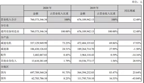 從年報來看,中大力德2020年國內(nèi)業(yè)務(wù)收入6.98億元,同比增長23.64%;國外業(yè)務(wù)收入0.63億元,同比下滑43.84%。境外業(yè)務(wù)下滑明顯,主要原因是疫情原因高毛利率的海外訂單收到影響,公司海外業(yè)務(wù)占比從19年的16.53%下降到20年的8.25%。
