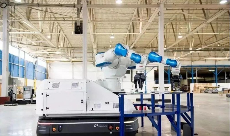 而發(fā)那科則選擇與安吉智能攜手, 2018年,雙方聯(lián)合推出了具有區(qū)域移動能力的協(xié)作機器人,將各自在智能AGV技術(shù)與協(xié)作機器人領(lǐng)域的優(yōu)勢相結(jié)合,突破常規(guī)機器人只能在導(dǎo)軌上作直線運動的限制、區(qū)域移動小車在行駛過程中存在的安全隱患、移動后再定位精度低的問題。同時,借助機械臂內(nèi)置的工業(yè)相機,以及AGV小車中的電池及逆變電流器,讓AGV小車可以自由載著機械臂到達指定工位,進行產(chǎn)品的精密的定位和抓取,極大地拓展了機械臂與AGV小車的適用范圍。