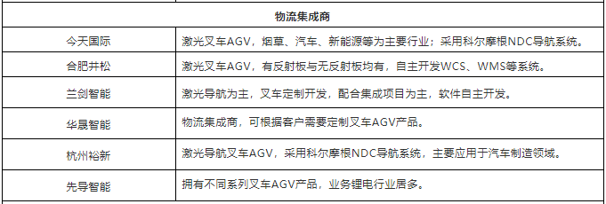 表:中國市場40+叉車AGV企業(排名不分先后,企業分類以其主營業務為依據)