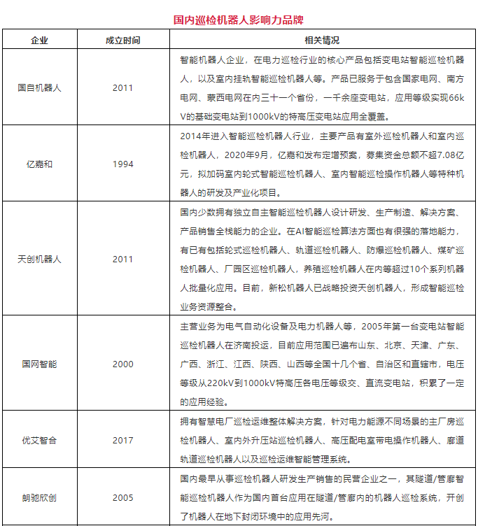 市場(chǎng)空間的廣闊吸引了更多的入局者,近年來(lái),越來(lái)越多的機(jī)器人制造廠商投入到變電站巡檢機(jī)器人的設(shè)計(jì)、研發(fā)和銷售,據(jù)統(tǒng)計(jì),目前國(guó)內(nèi)已有25家左右具有一定規(guī)模的巡檢機(jī)器人制造廠商,并已研制出適應(yīng)于不同環(huán)境條件的巡檢機(jī)器人。以下盤點(diǎn)了當(dāng)前國(guó)內(nèi)巡檢機(jī)器人市場(chǎng)一些影響力品牌,供大家參考!