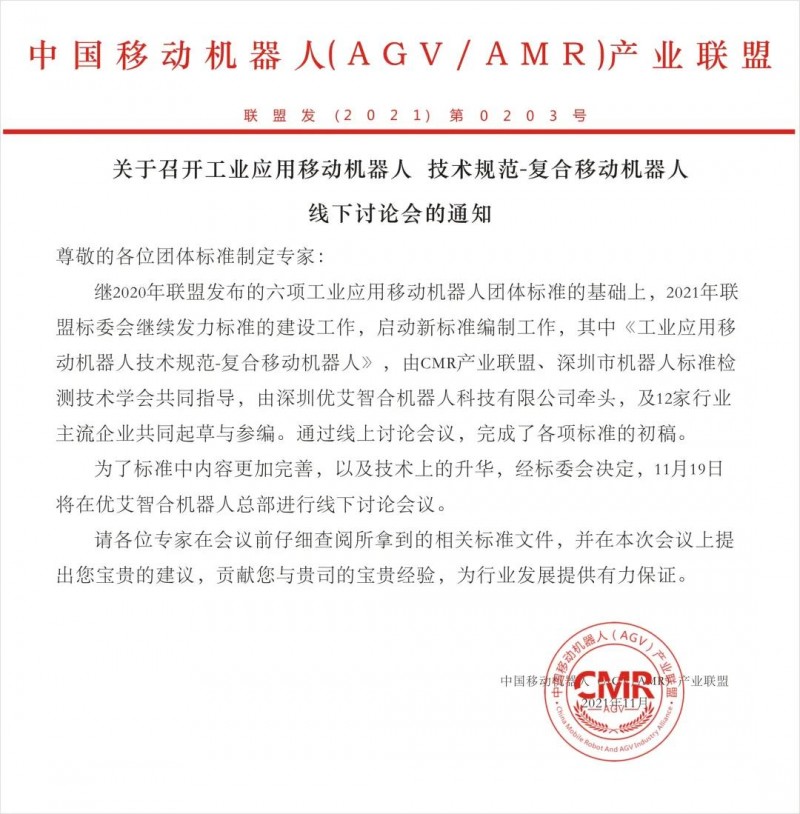 關(guān)于召開《工業(yè)應(yīng)用移動機器人 技術(shù)規(guī)范-復(fù)合移動機器人》線下討論會的通知