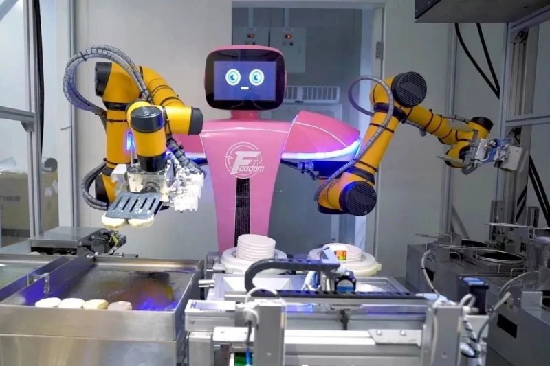 2022年,千璽機(jī)器人亮相冬奧智慧餐廳,在面積達(dá)到5400平米的智慧餐廳里,配備了120臺(tái)制餐機(jī)器人。