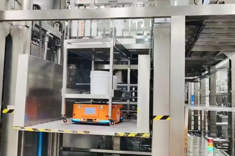 同時,由Gulf-1400-CDD無人叉車機(jī)器人負(fù)責(zé)原材料從原料倉到乳化車間的搬運(yùn)、空桶的產(chǎn)線返回、半成品從產(chǎn)線到車間的中轉(zhuǎn)、包材的產(chǎn)線搬運(yùn),搭配FMS調(diào)度管理系統(tǒng),實現(xiàn)最優(yōu)任務(wù)分配方案,讓倉儲物流整體效能最大化。