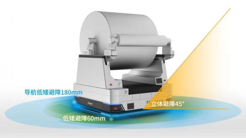 極智嘉雙舉升機器人采用激光傳感器,融合視覺算法,實現與機臺、緩存架的精準對接各向對接精度可達±0.5mm。搭配使用光電傳感器,可識別出料軸在叉臂上發生的位置偏移,并調整動作自動糾偏,有效防止拖料、掉料,降低安全風險和生產損失。